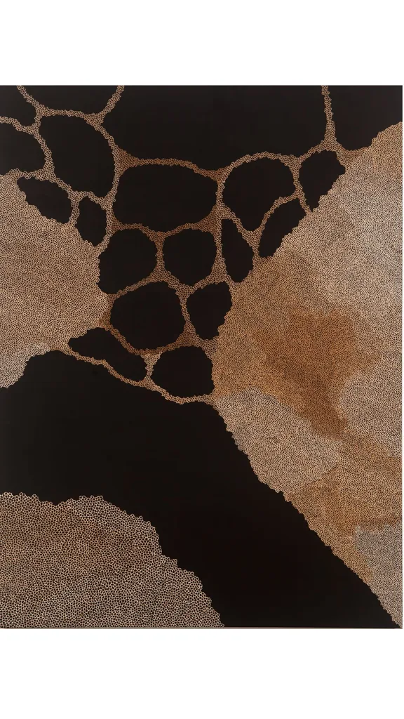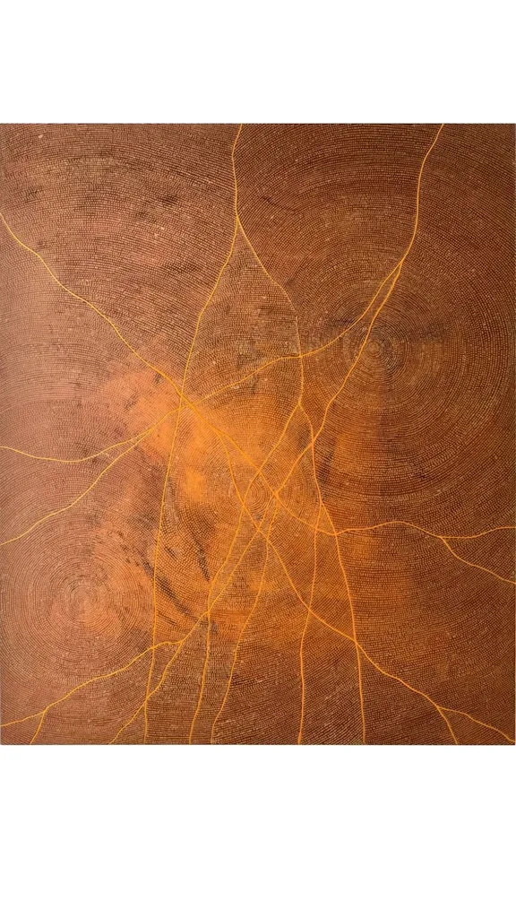 My paintings are inspired by an aerial view of my grandmother’s country, Atnwengerrp, almost like a talking map from the sky. They show the landscape, the song lines, and the knowledge embedded in that land. The meanings stay the same, but how we share them shifts with time, experience and new ways of seeing the world. Today I see so many Aboriginal artists pushing boundaries and blending the old with the new.