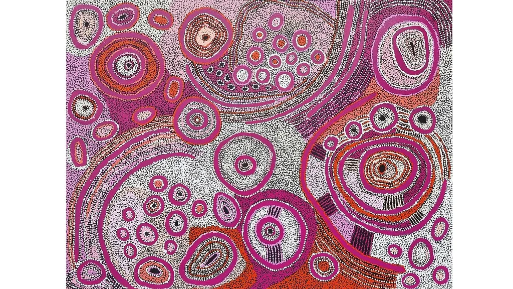 With that, more Aboriginal artists are reclaiming control over their stories and place. The original symbols that are used to tell our stories are still present in Aboriginal art today. These symbols have been passed down through generations, carrying meaning about Country, ancestors and our dreamtime stories. In my own work, I honour these traditional symbols – tracklines, bush foods and sacred sites – while also bringing in my own perspective.