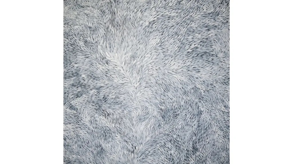 Her Grass Seed Dreaming paintings are mesmerising, delicate, layered compositions that honour the traditional practices of Aboriginal women who gathered native grass seeds for survival.
