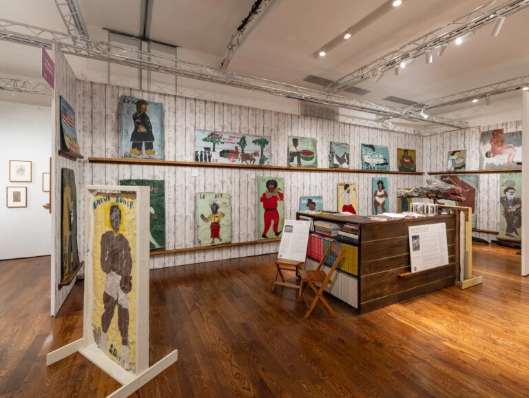Just before the exit, one arrives at London-based Gallery of Everything, which has built a reputation across major international fairs for discovering and repositioning visionary figures—from Madge Gill at Frieze Masters to Afro-Caribbean Surrealist painter Hector Hyppolite at Art Basel Paris. At the Outsider Art Fair, the gallery presents a full booth dedicated to Sam Doyle (1906-1985), drawn from the collection of Bob Roth. Born into the Gullah community of St. Helena Island, South Carolina, Doyle was a self-taught artist who transformed the front yard of his home into the St. Helena Outdoor Art Gallery, covering it with bold, graphic paintings on corrugated tin, scrap metal and found wood. A natural storyteller, he captured the lives of friends, neighbors, local heroes and healers through vivid portraits often paired with sharp, witty captions, while also reflecting the broader history of Black emancipation and cultural life. His work gained national attention following its inclusion in the landmark exhibition “Black Folk Art in America: 1930-1980” (1982), later entering the orbit of Jean-Michel Basquiat, who collected and displayed Doyle’s works in his studio. Today, Doyle is recognized as a central figure in 20th-century African American art, with works held in major institutional collections including the Smithsonian, LACMA and the High Museum.