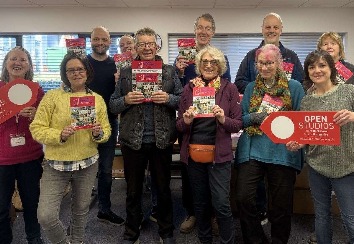On Distribution Day a team of 12 volunteers, led by artist Tracey Larkin, had an early start at Liberty House, Greenham to sort and hand out brochures, banners, flyers and posters to the 115 artists taking part in Open Studios West Berkshire & North Hampshire this May.