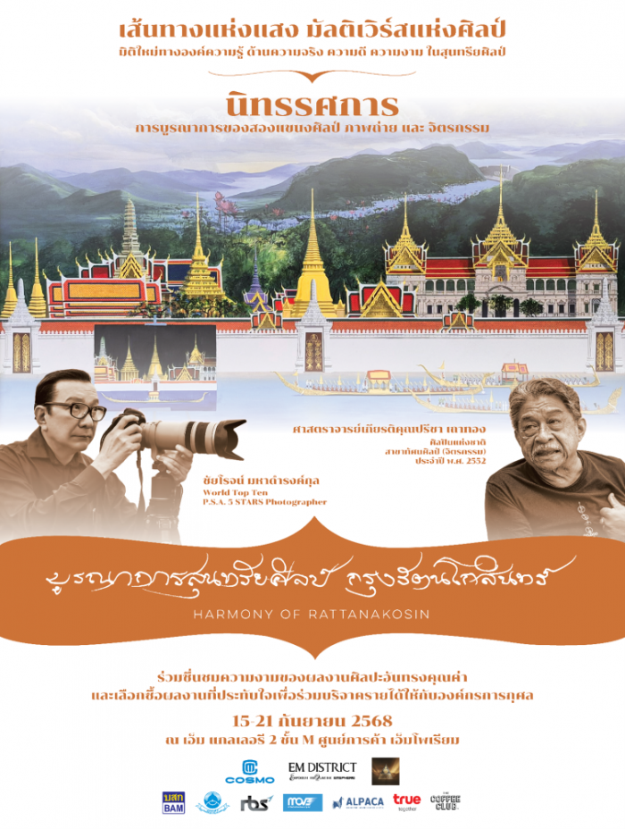 Journey into the heart of the Rattanakosin era, where timeless artistry and cultural heritage shaped the soul of Thailand. This exhibition honors the grandeur of the kingdom’s traditions through the masterful works of Thai National Artist Preecha Thaothong and the evocative lens of world-renowned photographer Chairod Mahadumrongkul (P.S.A. 5 STARS Photographer).