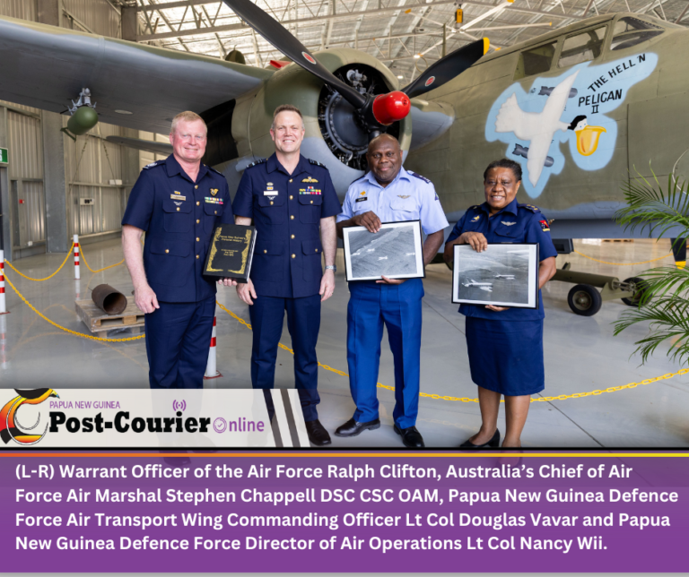 He presented pictorial history books and photos taken of Papua New Guinea’s Douglas DC3s in the mid-1970s by the first Commanding Officer of the Air Transport Squadron – William “Stew” McAllister – to the current Papua New Guinea Defence Force Air Transport Wing Commanding Officer Lt Col Douglas Vavar and Director of Air Operations, Lieutenant Colonel Nancy Wii.