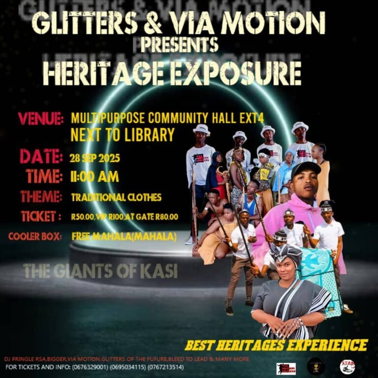 The event is free and open to all, and the community is encouraged to come out in numbers to support local talent, honour cultural heritage, and celebrate unity. With a strong focus on uplifting the youth and preserving local traditions, Heritage Exposure is more than a festival—it’s a movement toward a brighter, more connected future for Khutsong and the greater Merafong area.
