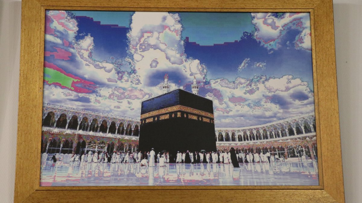 The pieces depict renowned mosques from various countries such as Malaysia, Qatar, Algeria and France and are noted for their vibrant use of colors.