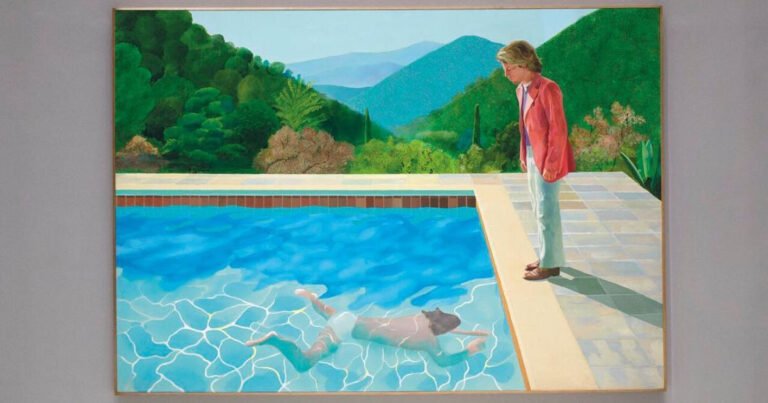 It was the 1960s when Hockney became a prominent figure in the British Pop Art movement. His work mainly explored modern ideas of consumerism and pop culture. A year after graduating from the Royal College of Art, David Hockney presented his first solo exhibition in 1963. Some of his earliest works include Portrait of My Father, which he painted in 1955 when he was just 18. Besides this, Hockney’s etchings and lithographs from the early 1960s also make up a significant facet of his artistic repertoire. For those who recognise him for his distinctive depiction of swimming pools in his artworks, it’s worth knowing how his fascination with pools began after arriving in Los Angeles and seeing them largely in the homes of art collectors. California Art Collector was his first pool painting from 1964.