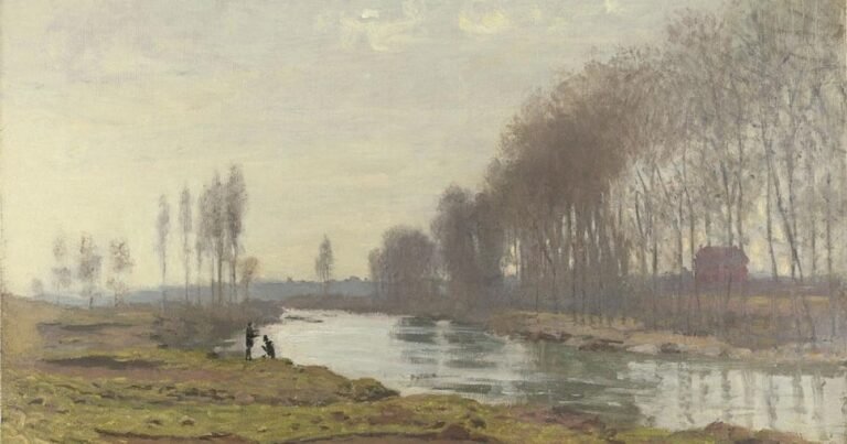 The painting, an early example of Monet’s impressionist style, captures a tranquil winter day on the outskirts of Argenteuil, a suburban town near Paris.