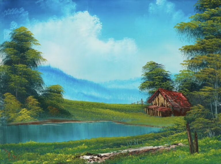 original painting by bob ross titled "home in the valley"