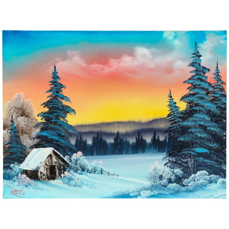 A handout photo of “Winter’s Peace” painted by television host Bob Ross in 1993. The painting is set to be auctioned Nov. 11 to provide funds for local public broadcasting following federal budget cuts made by Republicans that have impacted NPR and PBS.