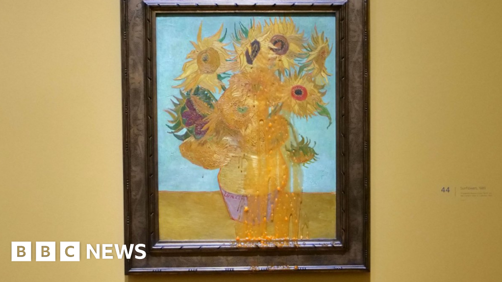 Orange-coloured soup was thrown at Sunflowers 1888 and Sunflowers 1889 in the highly acclaimed Poets and Lovers exhibition at the central London gallery.