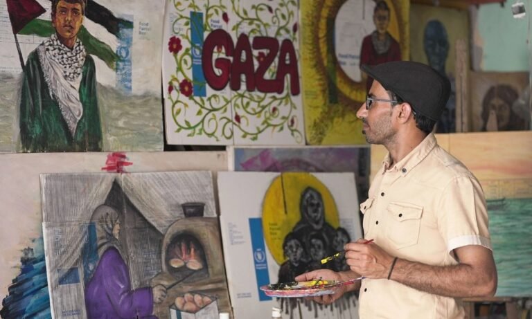 For the artist, seeing his work travel beyond Gaza has been deeply emotional. “I feel as though I’m sending a piece of Gaza to the world. These works aren’t just colours, they are living messages that carry our pain, our resilience, and our small dreams for peace and freedom,” he says. “It’s my way of saying: ‘We are here… we are still alive, and we still dream.’”