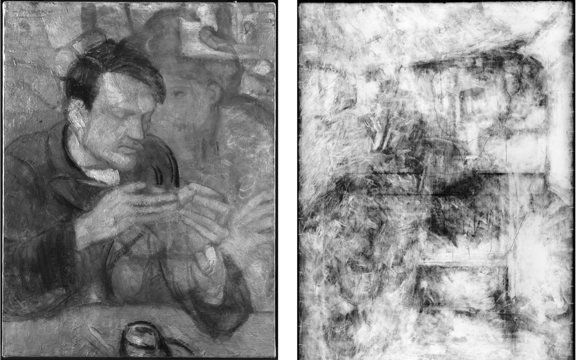 The analysed painting shows Picasso’s sculptor friend Mateu Fernández de Soto sitting at a table. De Soto arrived in Paris late 1901 and was staying in the studio with the artist where the portrait was made.