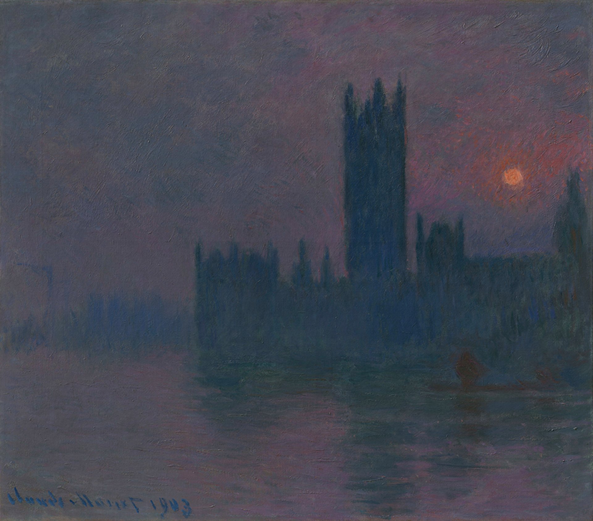 Richard Thomson, a Monet specialist at the Edinburgh College of Art, observes that the suns have a clear purpose in the House of Commons series: “They are circular shapes against the vertical lines of the towers, a hot colour against the cool tones.”